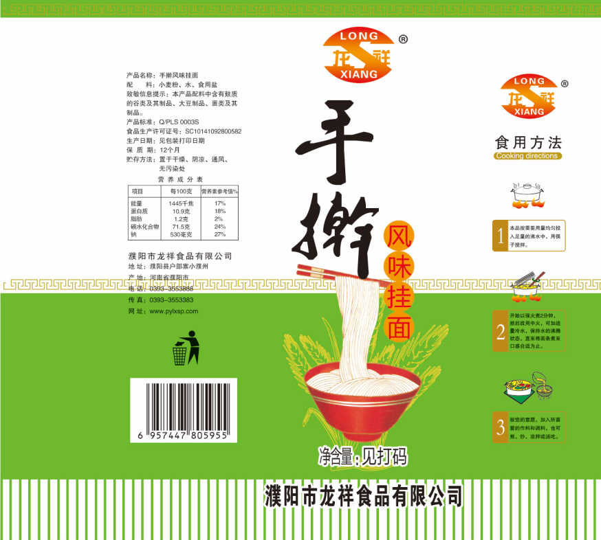 濮陽(yáng)市龍祥食品有限公司位于河南省濮陽(yáng)縣戶部寨鎮(zhèn)小濮州,始建于1994年,前期投資200萬(wàn)元,經(jīng)過(guò)幾年的努力,大力開發(fā)市場(chǎng),由于市場(chǎng)的需求量急劇上升,出現(xiàn)供不應(yīng)求,于2004年擴(kuò)建,建成一座新型的現(xiàn)代化面粉加工企業(yè),并擁有全國(guó)先進(jìn)全自動(dòng)生產(chǎn)設(shè)備一套,產(chǎn)量由以前的100噸/天,提高到現(xiàn)在400噸/天。 2012年再次擴(kuò)大規(guī)模申請(qǐng)為濮陽(yáng)市龍祥食品有限公司,注冊(cè)資金500萬(wàn)元。2012年又投資800萬(wàn)元新建掛面生產(chǎn)線一條,日產(chǎn)掛面50噸。龍祥食品有限公司現(xiàn)有職工120余人,總工程師1人,專業(yè)技術(shù)人員10人,經(jīng)濟(jì)師1人,會(huì)計(jì)師1人,銷售人員2人,優(yōu)秀專業(yè)人員20余人。  龍祥公司自創(chuàng)建以來(lái),社會(huì)效益十分可觀。公司一直以“今天的質(zhì)量,明天的市場(chǎng)”為信念,“一切為了客戶需求,竭誠(chéng)追求完美品質(zhì)”為企業(yè)宗旨,走專業(yè)化經(jīng)營(yíng)和職業(yè)化管理的路子。